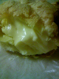 昨日買ったジャンボシュークリームです。皮はクロワワッサン生地です。